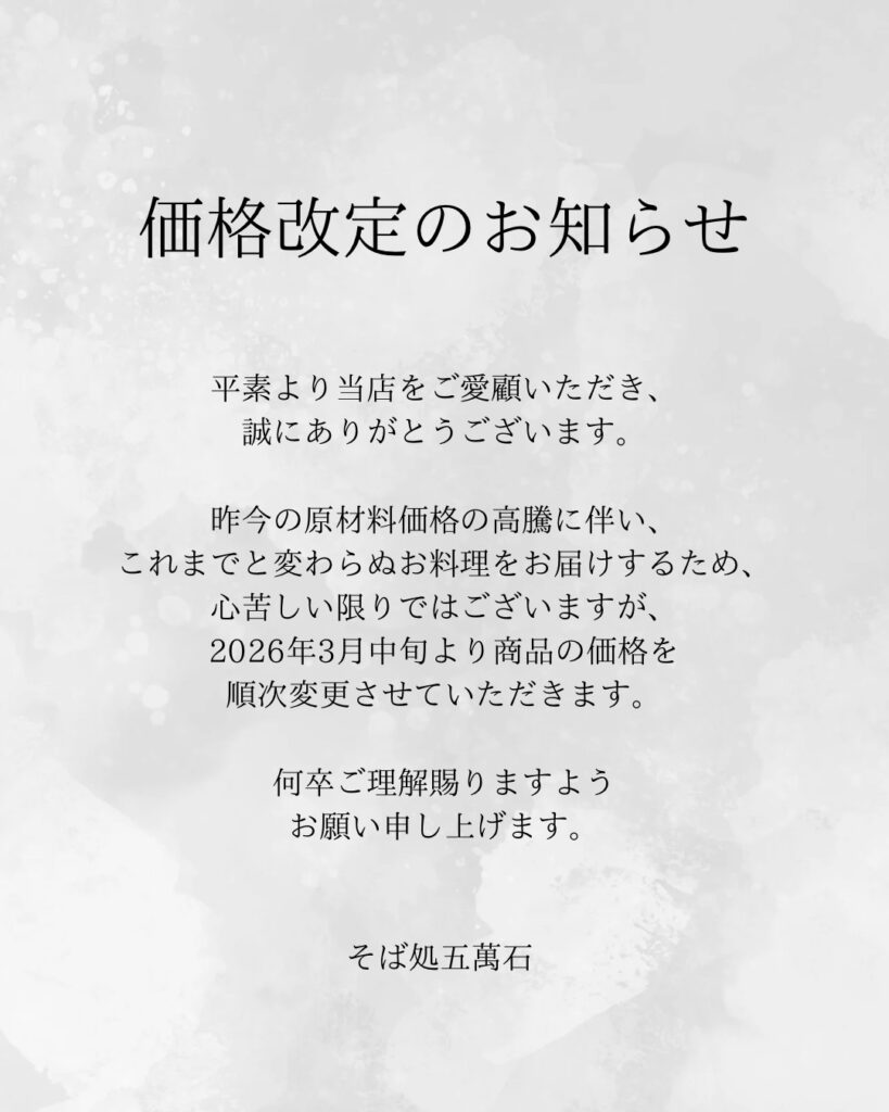 価格改定のお知らせ